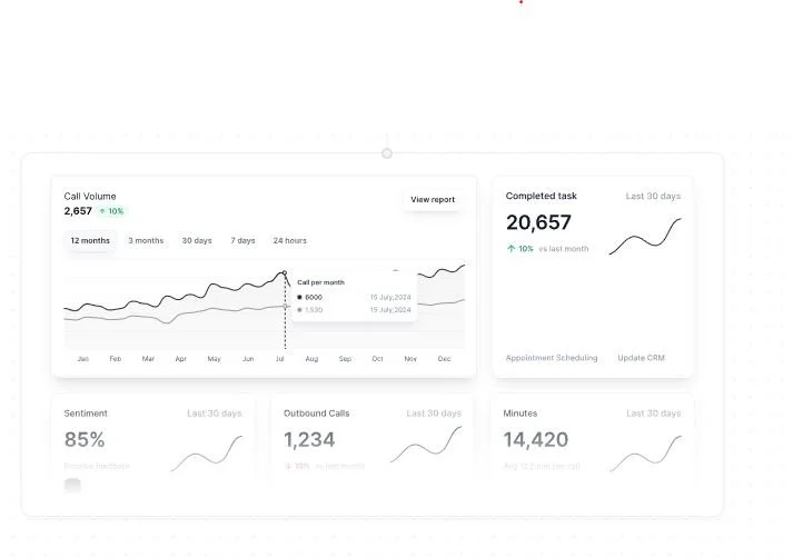 Run 24/7 customer support, handle thousands of calls, and track performance with advanced analytics.